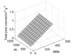 通過線性模型建立亞甲藍(lán)和碘值與總孔容的關(guān)系。使用由Kennard-Stone算法從39中選擇的10個樣本對表面進(jìn)行建模(圖5)。