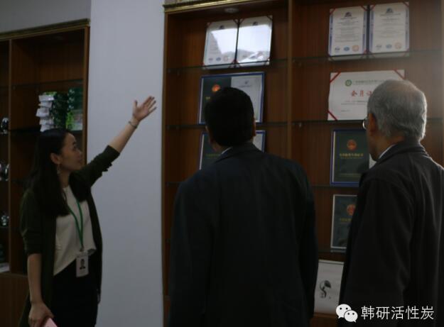 我司外貿(mào)總監(jiān)Jane 帶領(lǐng)來訪的客戶們參觀了我司的證書展示區(qū)(各種認證及專利)、產(chǎn)品展示區(qū)、研發(fā)實驗室、蜂窩活性炭生產(chǎn)車間、椰殼活性炭生產(chǎn)車間等等,讓他們更加真真切切地感受到韓研強大的技術(shù)研發(fā)及生產(chǎn)能力。
