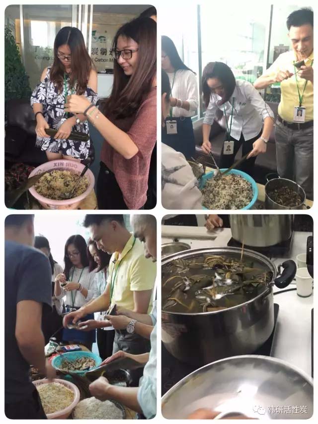 悠悠粽子香, 濃濃端午情,專注于活性炭的韓研人一個個爭先恐后地大顯身手,真別說,包粽子還真是一門技術活,男同胞和女同胞們進行對抗PK賽,幾乎勢均力敵,但最后還是讓心靈手巧的女同胞們奪了冠。
