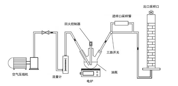 如圖1所示,在裝滿5g顆;钚蕴康牟蓸庸艿娜肟诤统隹谔幨占3分鐘的模擬烹飪油煙樣品。采樣重復3次。取出樣品管中的顆;钚蕴,轉(zhuǎn)移到燒瓶中,并使用超聲儀用15mL四氯化碳洗滌5分鐘。收集清潔液并將其轉(zhuǎn)移到另一個燒瓶中(標記為A)。用10mL四氯化碳再次洗滌顆粒活性炭,并收集清潔液并將其轉(zhuǎn)移到燒瓶A中。