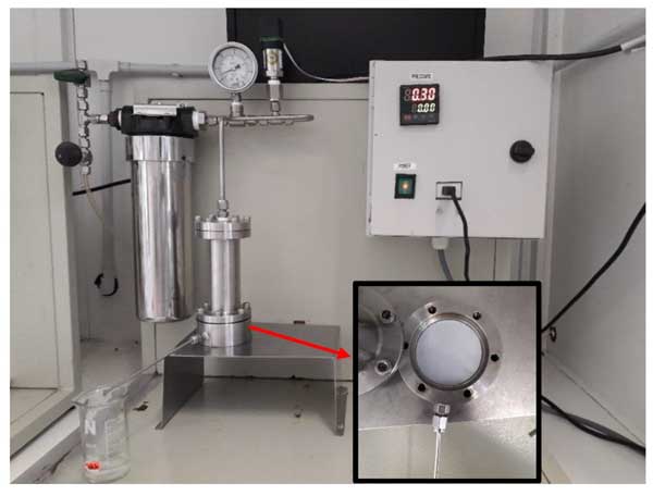為了生產(chǎn)聚合物膜,聚偏二氟乙烯和1-甲基-2-吡咯烷酮分別用作聚合物和溶劑。圖1展示了用于制備涂料的過程。最初,聚合物PVDF使用加熱套在60至70℃的溫度范圍內(nèi)完全溶解在1-甲基-2-吡咯烷酮溶劑中(圖1a)。為了獲得更好的合成膜滲透通量,加熱套溫度應(yīng)始終保持在上述范圍內(nèi)。然后將涂料溶液注入干凈的瓶中,再將所需量的粉末活性炭添加到原液中以生成用于混合膜的原液。最后,將裝有涂料溶液的玻璃瓶放入超聲波儀中8小時,以確認(rèn)添加劑的均勻混合,在制備的涂料中沒有產(chǎn)生任何氣泡。制膜過程使用甲半自動膜澆鑄機(jī)施加到合成使用干-濕相處理的平片膜。