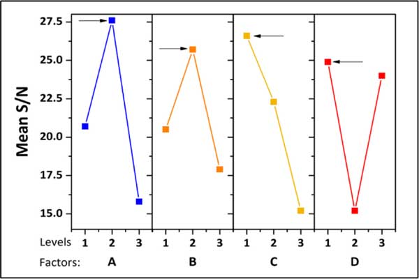 環(huán)己烷和苯在測(cè)試活性炭上的二元吸附,有相應(yīng)的穿透曲線(xiàn);钚蕴縀4對(duì)二元混合物中的兩種碳?xì)浠衔镲@示出最高的吸附能力。盡管樣品E4的苯吸附容量較高,但其選擇性低于其他活性炭(E9>E5>E6>E3>E1>E8>E2>E4>E7)。所有活性炭都優(yōu)先吸附苯,但樣品E1、E4、E5和E8顯示出很高的苯吸附能力。填充床的小數(shù)容量比在單組分氣體吸附更大的二進(jìn)制吸附。當(dāng)使用低吸附物濃度時(shí)填充床的吸附效率增加。表明活性炭材料可以更容易、更有效地吸附傳質(zhì)區(qū)中的碳?xì)浠衔铩T诙旌衔锓蛛x中,對(duì)活性炭苯吸附能力影響最大的因素是:活化劑、浸漬比和物理活化時(shí)間。吸附劑E1、E4、E5、E6和E8顯示出很好的信噪比。圖3說(shuō)明了在測(cè)試條件下制備活性炭的平均S/N比?傮w而言,制備具有高吸附能力的活性炭以從二元混合物中分離苯的合適條件已驗(yàn)證。