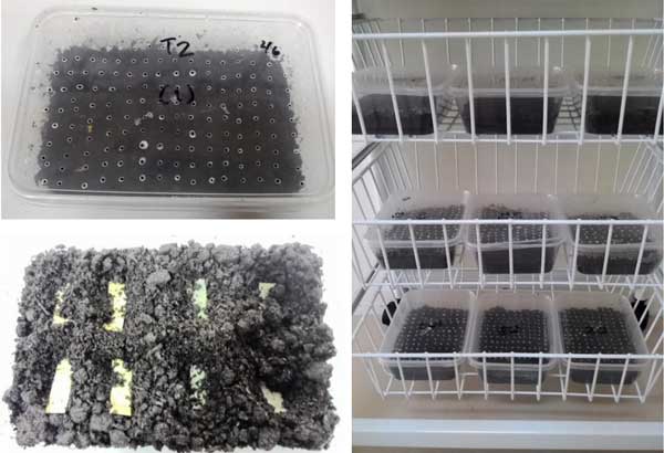 含活性炭和不含活性炭的纖維紙被切成3厘米x1厘米的條。這些紙在75℃下干燥48小時,干燥后的重量計算為初始干重。將紙張放入裝有堆肥土壤的塑料容器中,該土壤由農業(yè)產業(yè)生產的堆肥生活垃圾制成,濕度為45%,并用多孔蓋子蓋住。試驗組由12次重復組成,觀察12周,間隔4周(3次采樣)。采樣時間表示為T1、T2和T3。初始條件表示為T0。在取樣時,取出紙片并用軟刷清潔。土壤中生物降解試驗的描述如圖1所示。
