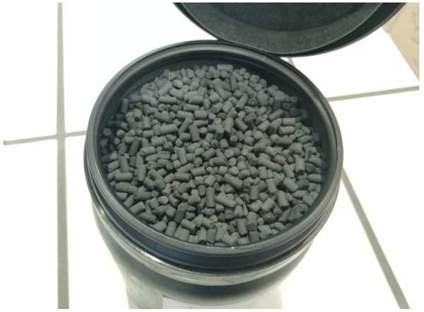 根據(jù)直接使用瓶裝真實氣體所獲得的結果,包括列出的催化劑毒物,這會導致催化劑快速降解,因此在第一個反應器的上游安裝了活性炭過濾器。為此,將金屬氧化物浸漬的活性炭顆粒添加到氣體混合站。這些顆粒專門開發(fā)用于從缺氧氣流(例如CO2、N2、CO和H2)中去除硫化氫、有機硫醇、二氧化硫、硫化羰和氮氧化物。它們的銅含量為7%(以CuO計),直徑為3mm,長度為7mm(圖3)。將總共約300毫升的這些顆;钚蕴考尤霘怏w混合站。