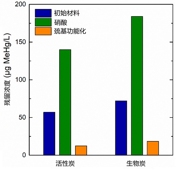 汞被對生物體具有高毒性,用于處理汞或甲基汞污染的水的方法不多,比如有吸附、混凝、過濾和生物過程。然而,到目前為止,只有吸附法在處理用于飲用的水時是比較可靠的。在接觸中與水相有關(guān)的主要形式是甲基汞,本次我們使用兩種碳基吸附材料,即活性炭和用來對照的生物炭,通過在其表面引入硫醇活性基團進行改性,以ppb濃度水平從類天然水中去除甲基汞。