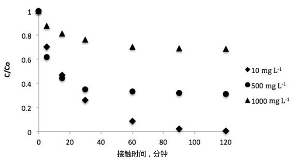 圖1:接觸時(shí)間對(duì)香草酸平衡濃度的影響。