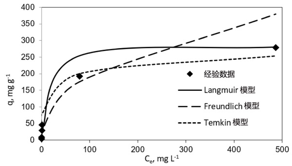 圖2:Langmuir、Freundlich和Temkin等溫線。