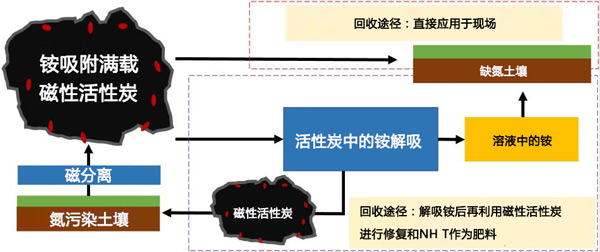 圖2:土壤修復后磁性活性炭和銨鹽的兩種循環(huán)利用途徑。