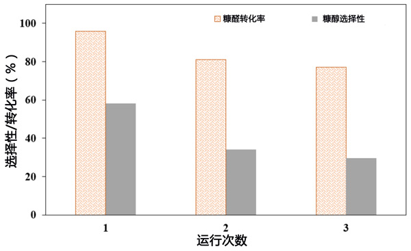 圖3:使用載鐵鉑活性炭催化劑將糠醛轉(zhuǎn)化為糠醇的催化劑可回收性。