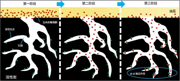 圖3:玉米油中玉米赤霉烯酮在活性炭上的吸附機(jī)理。