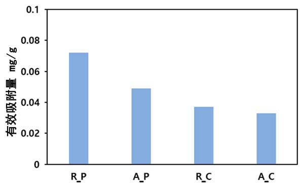 將四種活性炭應(yīng)用于低沸點混合氣體吸附的結(jié)果如圖2所示。無論活化如何,棕櫚基活性炭都表現(xiàn)出比煤基活性炭更高的吸附能力。對于棕櫚基活性炭和煤基活性炭來說,失活狀態(tài)更有利于吸附?紤]到活化后比表面積增加,觀察到比表面積對低沸點THC氣體的吸附能力沒有顯著影響。吸附容量(吸附劑的固有特性)會因吸附位點數(shù)量的減少或解吸反應(yīng)的促進而降低。因此,材料的吸附能力會由于吸附位點數(shù)量的減少或由于活化過程后活性炭表面上的孔徑分布的變化而加速解吸反應(yīng)而降低。因此,應(yīng)研究影響這兩種可能性之間的有效吸附能力的因素。