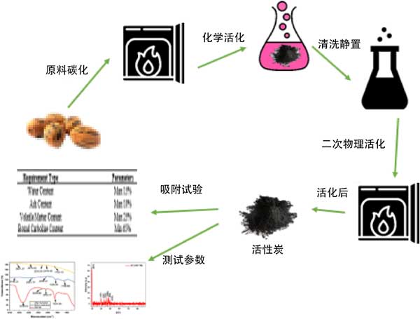 果殼用作生產(chǎn)活性炭的原料。在果殼廢料的合成過程中,第一步是將殼在陽光下干燥3小時。然后將干燥的果殼在350℃的溫度下碳化2小時。隨后使用研缽將碳化的果殼研磨成粉末,然后過100目篩。樣品制備首先稱量肉豆蔻殼粉末和預定的1M-HCl溶液。接下來,用1M-HCl溶液將粉末活化24小時;罨,活性炭過濾并用蒸餾水洗滌,直至pH值變?yōu)橹行。一旦pH值為中性,活性炭就會在110℃的溫度下煅燒1小時。煅燒后,來自肉豆蔻殼的碳在惰性氣體氣氛(氮氣)中在600℃、650℃和700℃的溫度下退火2小時。然后用蒸餾水洗滌所得結(jié)果以除去金屬化合物。氨(NH3)水平降低最多的樣品將根據(jù)下面的圖1進行表征。