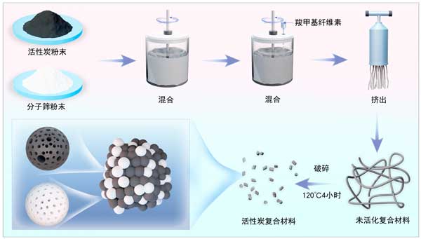 圖1:活性炭分子篩復(fù)合材料合成示意圖。