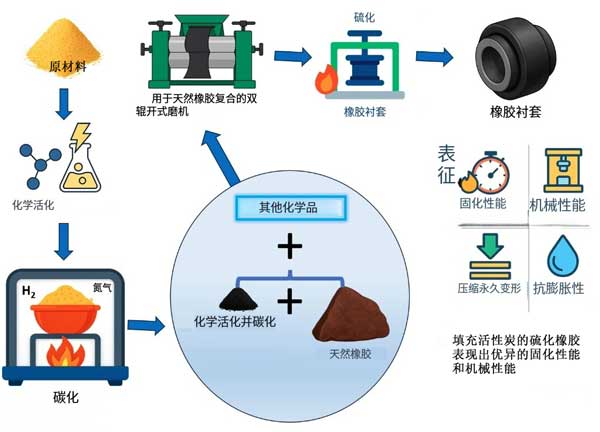 硫化橡膠襯套作為重要的機械減震元件,廣泛應(yīng)用于汽車、航空航天、機械制造等領(lǐng)域。然而,傳統(tǒng)橡膠襯套在生產(chǎn)和使用過程中存在揮發(fā)性有機物釋放、力學(xué)性能不足、阻燃性能欠佳等問題。近年來,隨著環(huán)保要求的提高和產(chǎn)品性能需求的提升,活性炭作為一種多功能填料在橡膠制品中的應(yīng)用受到廣泛關(guān)注;钚蕴坎粌H具有發(fā)達的孔隙結(jié)構(gòu)和巨大的比表面積,還表現(xiàn)出優(yōu)異的吸附性能和補強效果,為硫化橡膠襯套的性能優(yōu)化提供了新的解決方案。