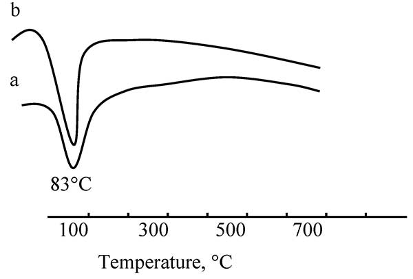 利用DTA技術(shù)研究了煅燒過(guò)程中催化劑的性質(zhì)變化。圖1顯示了煅燒和干燥活性炭載體的DTA曲線。兩個(gè)樣品在83℃附近只有一個(gè)吸熱峰。該峰對(duì)吸附水的解吸有貢獻(xiàn)?紤]到活性炭是具有極高容量和高吸附速率的優(yōu)異吸附劑的事實(shí),甚至在樣品干燥或煅燒之后峰值出現(xiàn)也就不足為奇了。兩種樣品的DTA曲線沒(méi)有明顯差異,表明煅燒對(duì)載體的熱性質(zhì)基本上沒(méi)有影響。