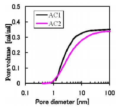兩種活性炭(AC1:比表面積1950m2/g和AC2:具體表面面積:1190平方米/ g,每個粒徑調(diào)整在約100μm)),具有不同的孔分布被使用。 如圖1所示,AC1的孔隙廣泛地從中孔發(fā)展到大孔。該AC2主要以微孔形式存在。 兩者的性質(zhì)和孔結(jié)構(gòu)特征吸附劑如表1所示。如表1所示,兩種活性炭具有較高的比活度表面積被使用。
