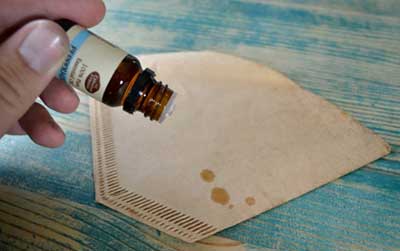 這一步是可選的,但如果你想要的話(huà),你可以添加幾滴精油到過(guò)濾器的外部,讓你的鞋子附魔上你喜歡的氣味。并且你會(huì)發(fā)現(xiàn)活性炭會(huì)吸收一些精油氣味,但不是全部?Х冗^(guò)濾紙傾向于從制作的咖啡渣中吸收油,同時(shí)讓水通過(guò),這對(duì)我們來(lái)說(shuō)是比較適合的。讓精油放在過(guò)濾器的外部,而臭味和鞋子的水分通過(guò)過(guò)濾器吸收到活性炭粉中。