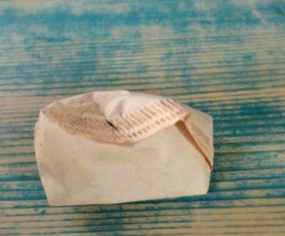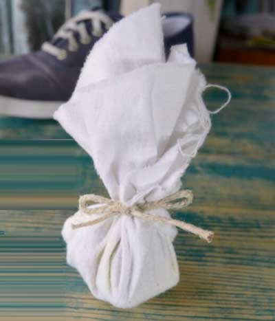 你的活性炭已經(jīng)填裝到咖啡過(guò)濾紙上了,精油也滴上去了。現(xiàn)在只要盡可能緊地包裹過(guò)濾紙,同時(shí)將角落塞入以防止活性炭泄漏。如果您想要格外謹(jǐn)慎,可以使用一小塊膠帶密封好,并在下一步中保持開(kāi)啟狀態(tài)。