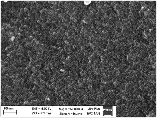 采用檸檬酸應用合成方法,通過軟模板法獲得活性炭 。在實驗的低溫(-196℃)氮吸附-解吸等溫線的基礎上確定了表征所研究活性炭的介孔結構的基本標準參數(shù)。對于獲得的活性炭圖像,使用掃描電子顯微鏡(SEM),發(fā)現(xiàn)活性炭材料具有有序的,均勻的多孔結構,中孔尺寸約6nm(圖1)。