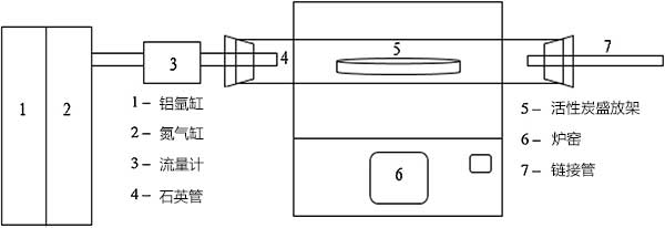 將三種棕櫚廢物預(yù)處理的樣品碳化并通過一步法在700℃下在氬氣流下使用管式爐以10℃/min的加熱速率活化。當(dāng)達(dá)到700℃的設(shè)定溫度時(shí),以5L/min的流速代替氮?dú)獾臍鍤饬,以活?小時(shí)的保持時(shí)間。圖2顯示了一步物理活化的實(shí)驗(yàn)裝置的示意圖。然后使樣品冷卻并儲(chǔ)存在密閉容器中以避免孔吸附大氣氣體。