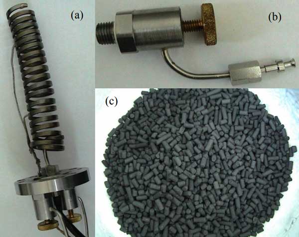我們研究了一種氮氣活性炭吸附池的單級原型,該原型用于驅(qū)動低溫冷卻器。壓縮機的一些主要特性取決于所需的低溫冷卻器性能參數(shù),尤其是工作壓力和氮氣流量。設(shè)計構(gòu)建實驗吸附池,一些組件如圖1所示。在上面研究了氮在所選活性炭上的吸附,并且已經(jīng)提出改進的Freundlich模型來計算作為溫度和壓力的函數(shù)的吸附氮的量。該模型用作計算吸附式壓縮機循環(huán)參數(shù)的基礎(chǔ)。吸附劑是商用顆粒狀活性炭。顆粒直徑為3毫米,以煤為基礎(chǔ),由高溫蒸汽活化,具有1000的高比表面積。