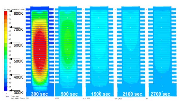 圖3:僅具有自然對流的冷卻階段的數(shù)值傳熱分析。