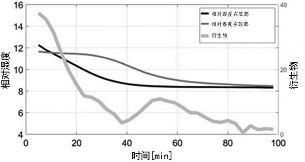圖4:反應(yīng)器內(nèi)的相對濕度和出口中二氧化碳的衍生物。