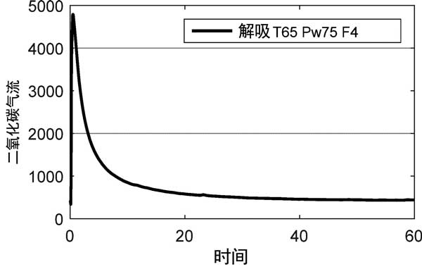 在實驗中通過在溫和溫度下的水分振蕩進(jìn)行解吸實驗,以使活性炭中碳酸鉀再生回碳酸鉀倍半水合物在升高的溫度和氮氣流下的再生步驟將具有大的能量損失,使這個過程在經(jīng)濟上不可行。圖5顯示了二氧化碳濃度峰值剛好低于5000ppm。質(zhì)量平衡表明,在實驗中釋放了吸附的總二氧化碳的50%。盡管最大二氧化碳濃度對于實際應(yīng)用來說不夠高,但該實驗證明了在活性炭內(nèi)碳酸鉀倍半水合物和碳酸鉀之間循環(huán)的概念。需要進(jìn)一步優(yōu)化解吸過程。