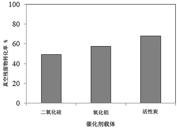 用活性炭,二氧化硅和中孔氧化鋁載體制備加氫處理催化劑,并在410°C的溫度和10MPa的壓力下進行真空殘留物加氫處理反應的測試。對比性能顯示,盡管二氧化硅負載的催化劑具有非常高的表面積,但由于其較低的孔徑,它在殘渣提質(zhì)過程中極易形成焦炭。反過來,這導致轉(zhuǎn)化率低和液體產(chǎn)品收率低。與二氧化硅負載的催化劑相比,活性炭負載的催化劑表現(xiàn)出更高的轉(zhuǎn)化率。原因之一是活性炭的孔徑分布比二氧化硅高;钚蕴看呋瘎┑挠行钥蓺w因于其較大的孔徑,較高的孔體積以及活性金屬的較好分散性。這些對于殘余物加氫處理催化劑是有利的性質(zhì)。