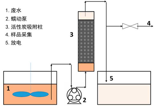 圖1:用于活性炭連續(xù)吸附測試的實(shí)驗(yàn)裝置示意圖。