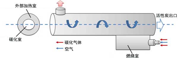 圖2:旋轉(zhuǎn)碳化爐的結(jié)構(gòu)。